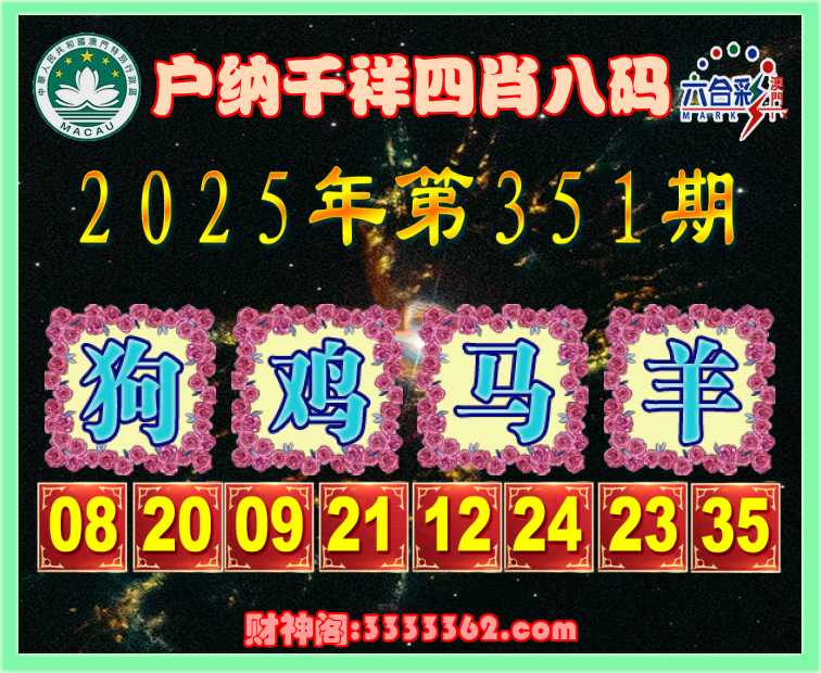 351期:《户纳千祥》 🏇四肖八码🏇【狗鸡马羊】开:00准