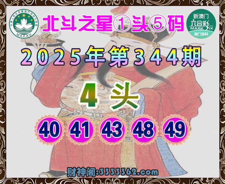 344期:【北斗之星】 🍔①头⑤码🍔【4头主:40.41.43.48.49】开:00准
