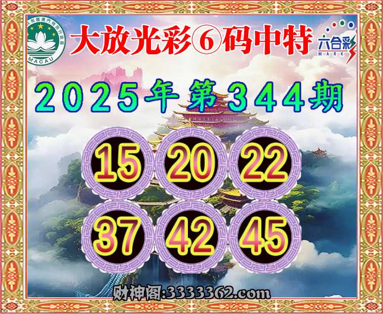 344期:【大放光彩】 🍙⑥码中特🍙【15.20.22.37.42.45】开:00准