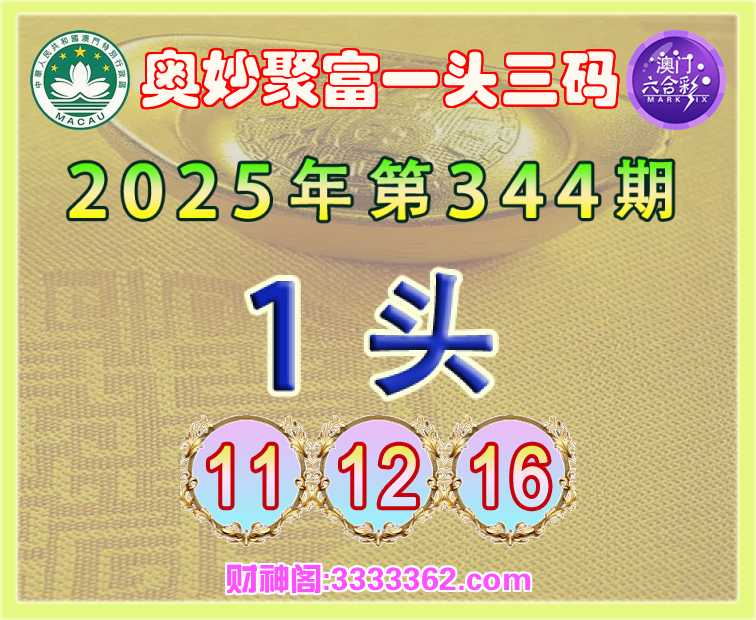 344期:《奥妙聚富》 👩‍🌾一头三码👩‍🌾【1头主:11.12.16】开:00准