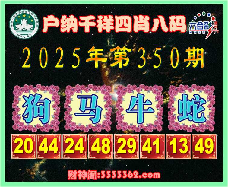 350期:《户纳千祥》 🏇四肖八码🏇【狗马牛蛇】开:00准